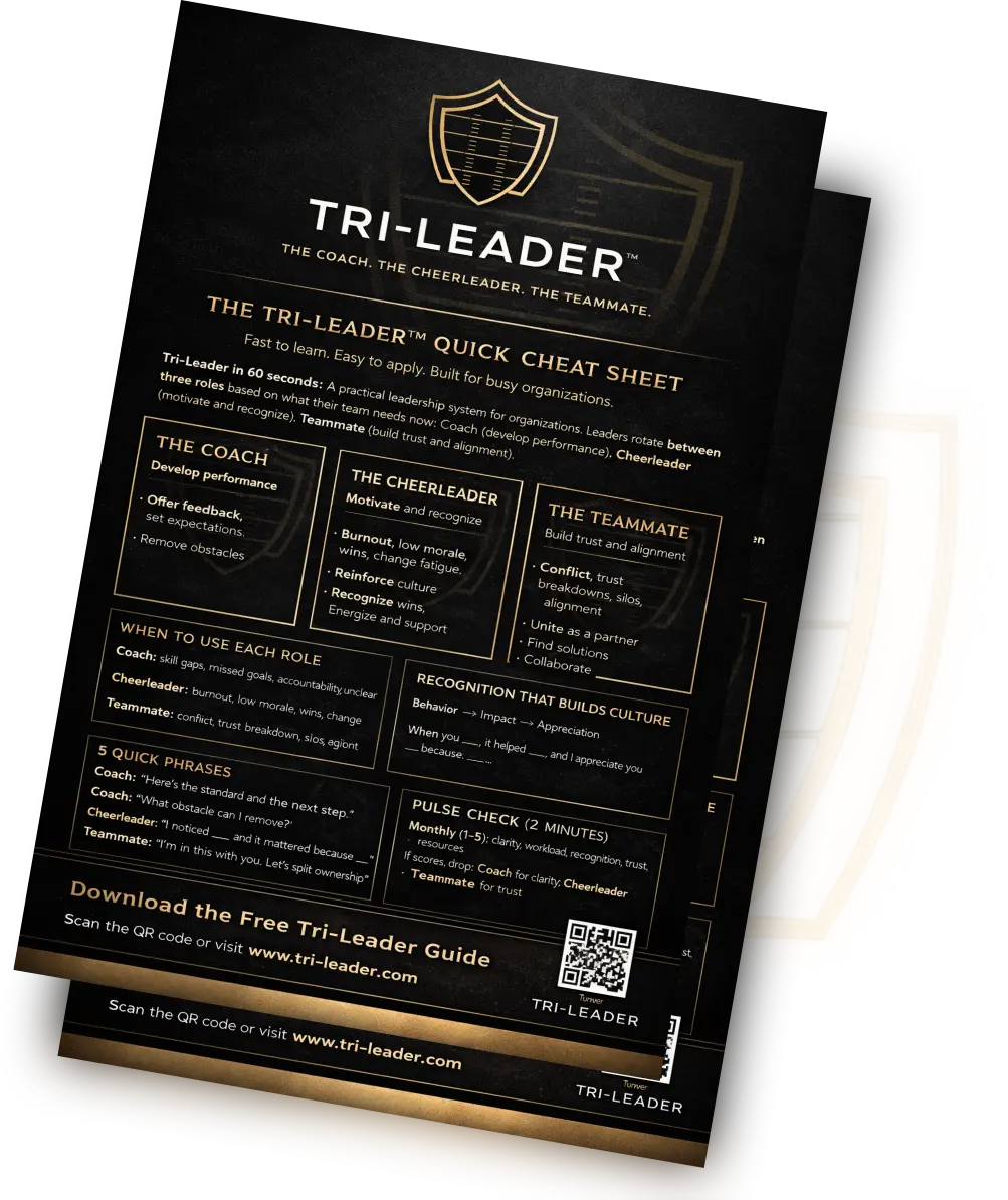 Leadership should not be complicated or time-consuming to apply. The Tri-Leader Quick Guide gives you a clear, practical framework that helps leaders know exactly how to show up for their teams in real situations. In just one page, you will learn how to lead as a Coach who drives performance, a Cheerleader who builds morale and recognition, and a Teammate who creates trust and alignment. Whether you are developing managers or strengthening leadership culture across your organization, this free guide delivers actionable tools you can use immediately. No fluff, no theory, just leadership that works.